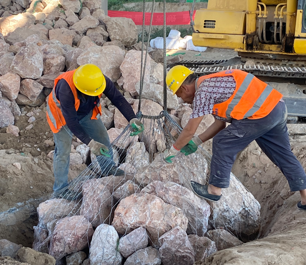 合金網(wǎng)兜又稱石籠網(wǎng)兜。石籠網(wǎng)袋是由雙絞合六角形金屬網(wǎng)編織而成的圓柱形袋狀物。在施工過程中,石籠網(wǎng)袋內(nèi)填充石料,構(gòu)成結(jié)構(gòu)牢固,透水性的建筑材料,用于河道防護等緊急預(yù)備工程。